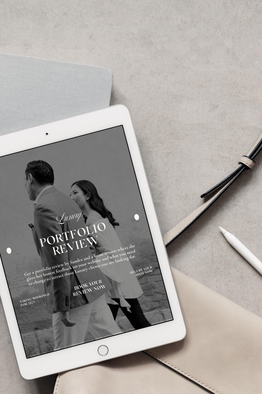 Your portfolio is your calling card in the photography industry. A compelling portfolio not only showcases your skills but also tells your unique story to potential clients. Let’s work together to elevate your work and position you for success in the luxury wedding market!